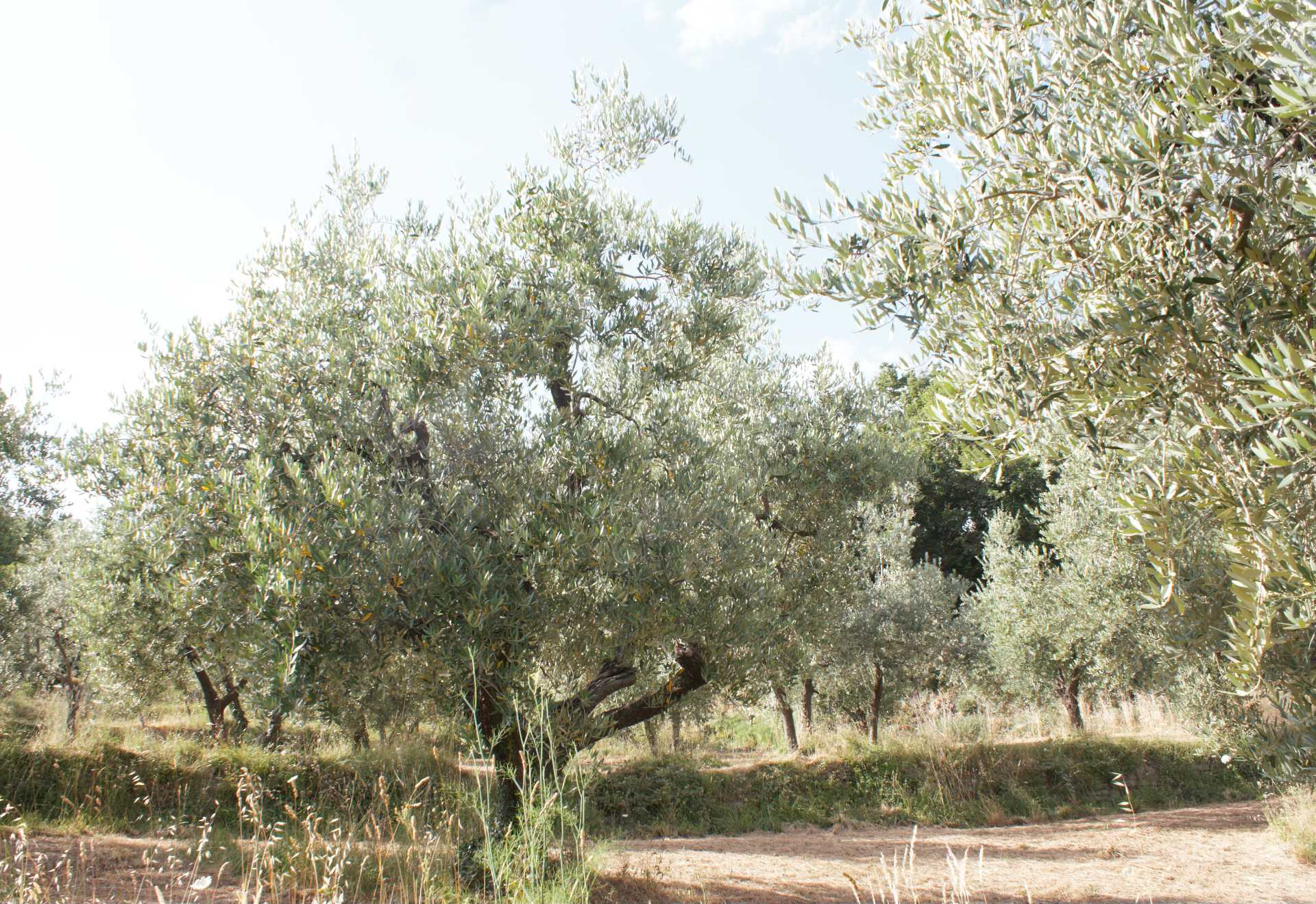 Divisi in tre cultivar con la maggior parte di Leccino, 150 piante di Moraiolo e 130 di Frantoio con i Pendololino come impollinatori.